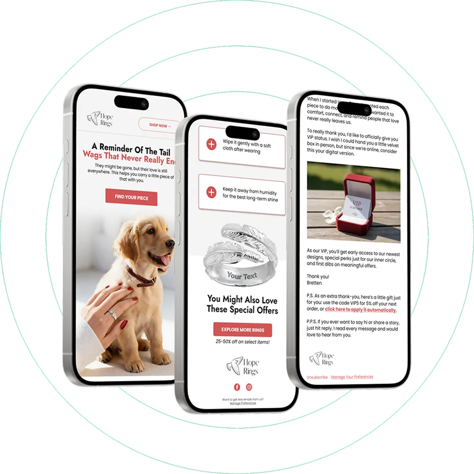 Generic promotional emails don't just underperform for a brand like this — they actively erode the trust that makes the product meaningful in the first place. We rebuilt Hope Rings' entire email programme around the emotional truth at the centre of everything they sell.